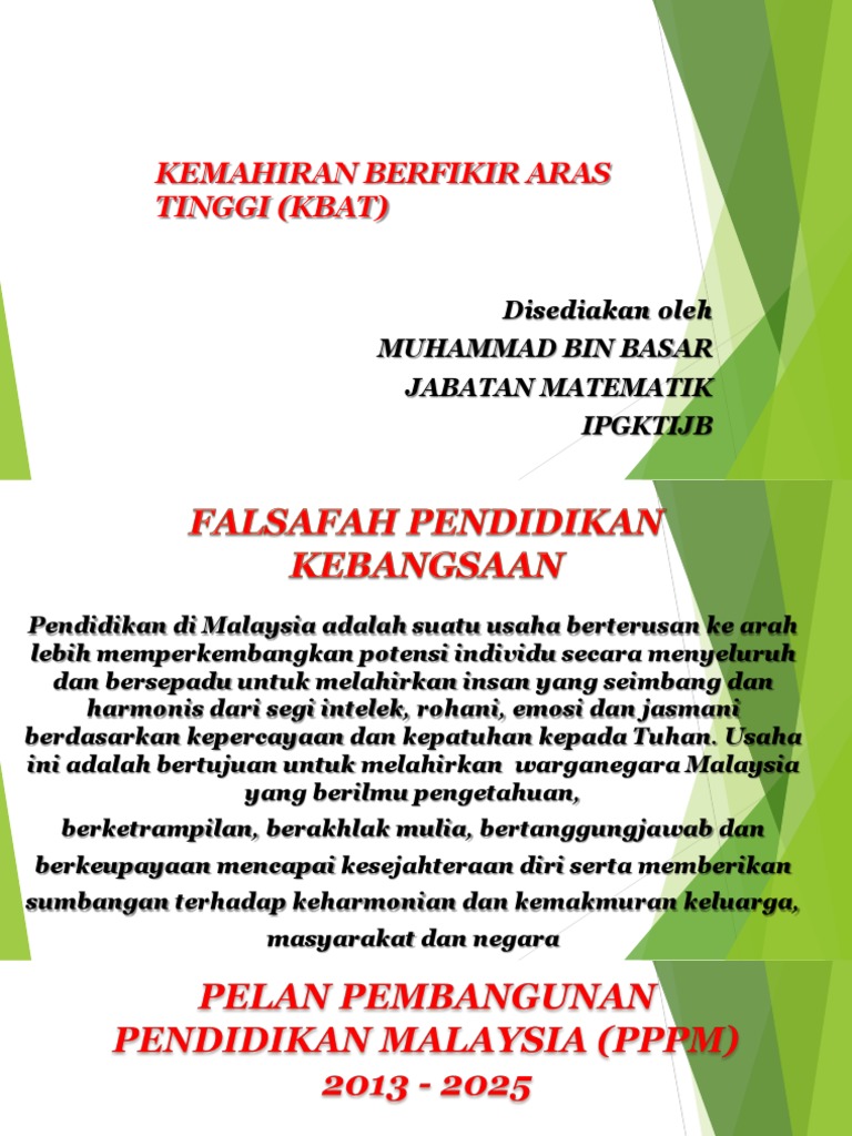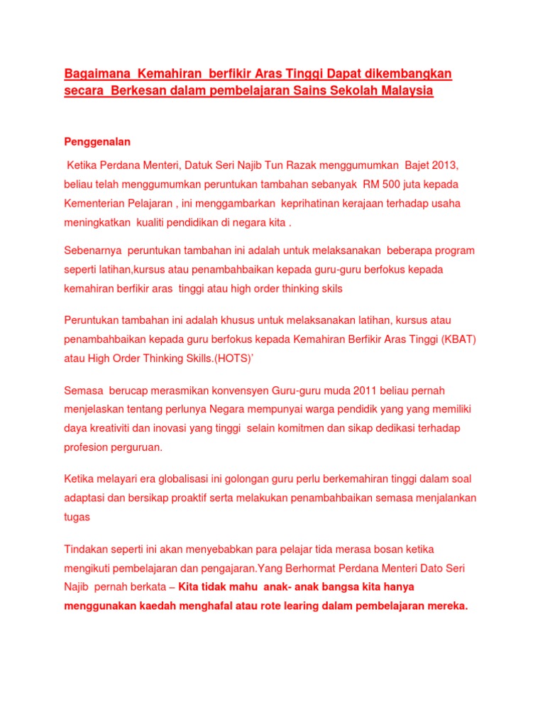 Dalam konteks pengajaran dan pembelajaran pendidikan islam, tanggungjawab ini harus digalas oleh guru dalam usaha membina, membimbing dan namun begitu, sebelum melaksanakan penerapan kemahiran berfikir aras tinggi (kbat) dalam pengajaran dan pembelajaran pendidikan islam, guru.