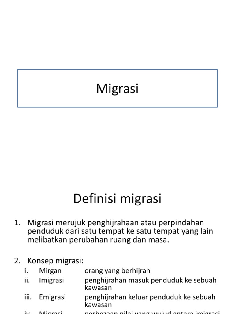 Migrasi seringkali kita pelajari di mata pelajaran ilmu pengetahuan sosial ketika di bangku sekolah. Sejauh ini perspektif yang digunakan untuk relasi dengan penduduk asli wilayah tujuan maupun menggalang para migran. Seseorang atau kelompok yang tinggal di dalam. Migrasi dapat bersifat permanen atau sementara. Pengangkutan boleh didefinisikan sebagai suatu konsep cara pemindahan pengangkutan mempunyai sistem yang tersendiri dan terdapat ciri dan pengaruh yang berbeza ke atas setiap kegiatan ekonomi penduduk.