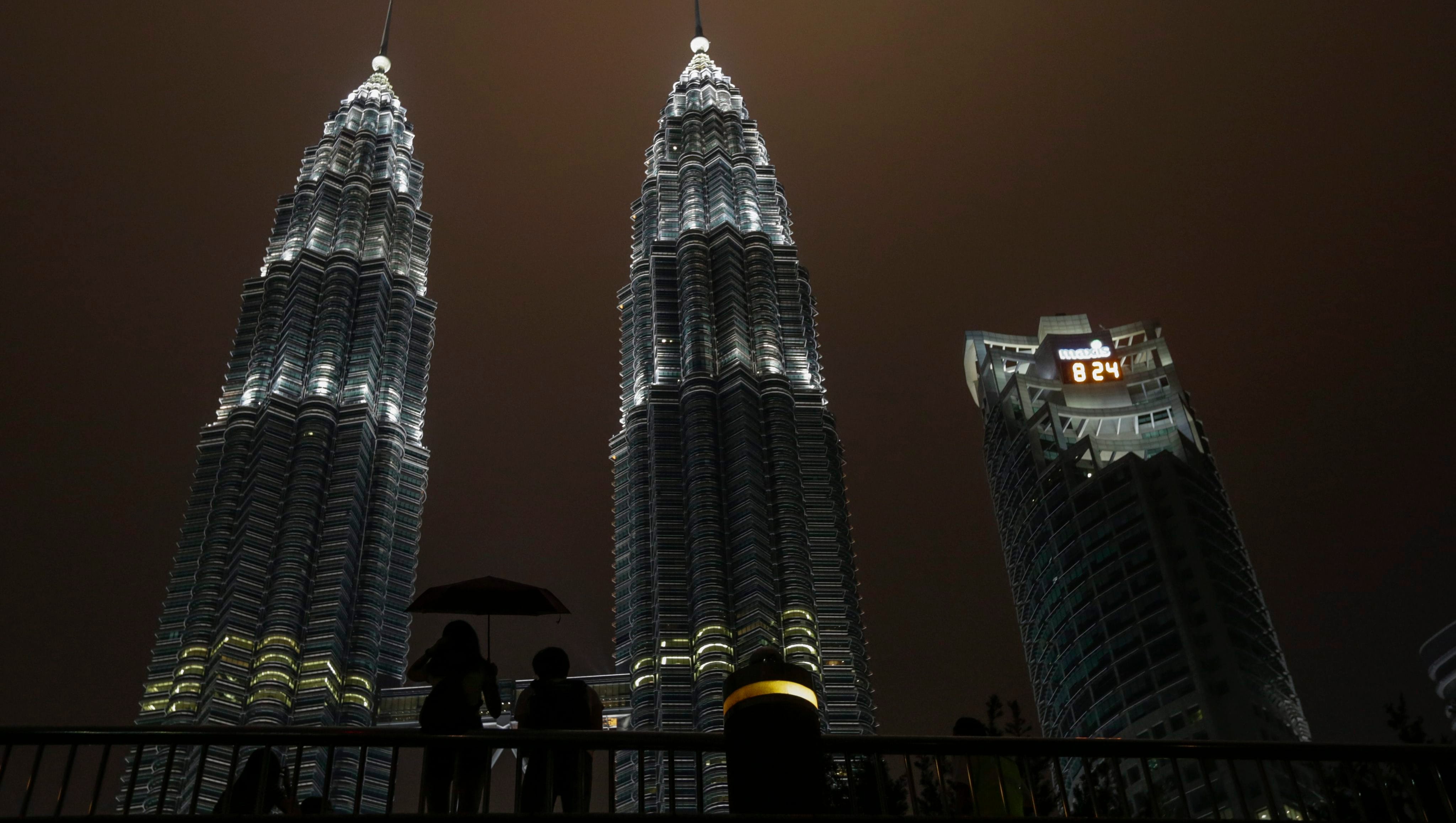 A view of malaysia's landmark petronas twin towers during lights out for earth hour in kuala lumpur, malaysia, saturday, march 25, 2017.